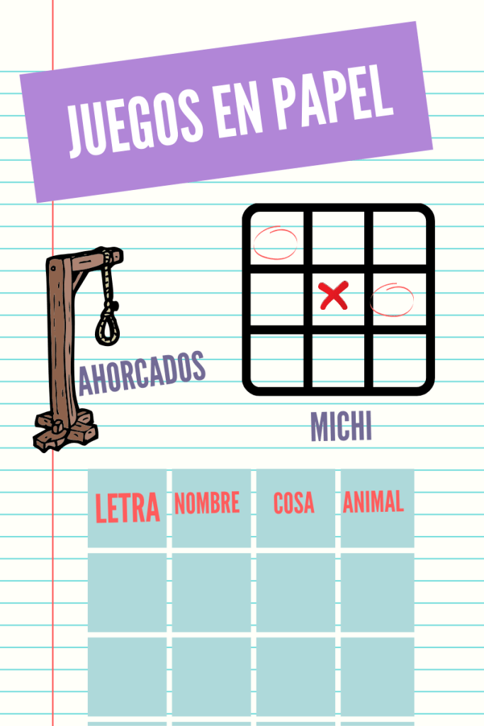 – En mi amado Perú tenemos unos juegos que se llamaban en ese tiempo «michi» «nombre, animal,cosas» (ese se iba haciendo con las letras del abecedario) , «bombita» «ahorcado» y muchos más.