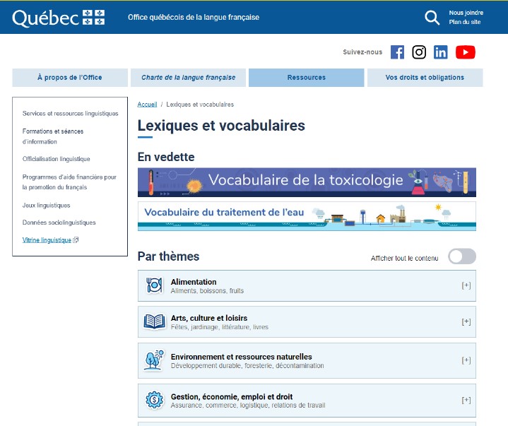 El Office québécois de la langue française (OQLF) es una institución encargada de promover y proteger el francés en Québec. A través de su sitio web, ofrecen una amplia variedad de recursos lingüísticos, incluyendo diccionarios en línea, como el Lexique des vedettes du Québec, que es un diccionario de términos específicos de Québec, como nombres de personas, lugares y eventos importantes en la historia y la cultura de la provincia.