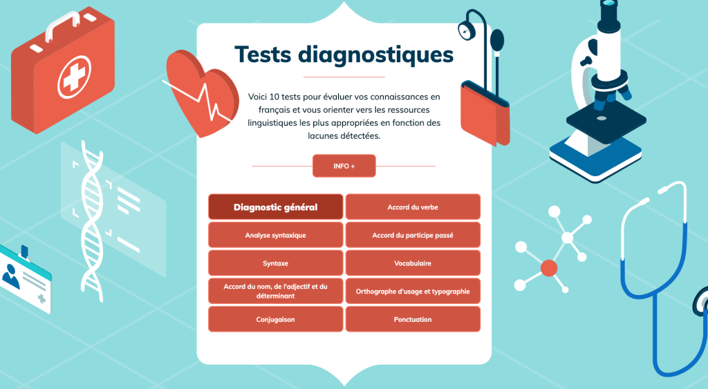 Algunos de estos sitios incluyen ejercicios de vocabulario y gramática, exámenes de práctica, y listas de palabras y frases médicas. También, estos recursos pueden ser útiles para aquellos que desean mejorar sus habilidades de francés en general
